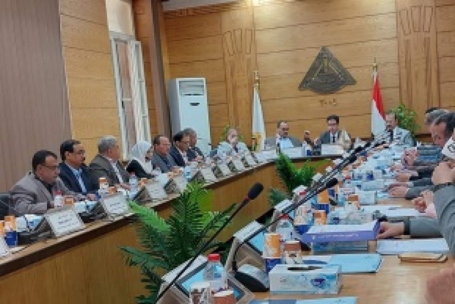 The university holds its council under the presidency of prof.Dr. Nasser EL-Gizaway, the University president, prof.Dr. Tamer Samir, the vice president of educational and students affairs, prof.Dr. EL-Sayed Fouda, the vice president of community service and environment development, and a number of the council members. The university president stresses that the council members totally support the stance of the Egyptian state and his Excellency Mr. president/ Abdel Fattah El-Sisi with regard to the Palestinian cause support and the rejection of the Palestinians’ transfer from Gaza Strip to Sinai because this can result in the final liquidation of the Palestinian cause. The university, he contends, organizes blood donation campaigns and stand in support of the Palestinians’ cause. He also thanks the university’s leaders for the exerted efforts to begin then new academic year and provide the students with the proper learning environment.
