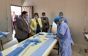 Prof.Dr. Randa Mohamed Ahmed Mustafa, Benha University Vice- President for Community Service Affairs inspected workshops of making masks at faculty of Specific Education in presence of Dr Mohamed Ibrahim, the Faculty dean and deputies. The Workshops aims to make 2000 masks daily to be given for all visitors and patients at the University Hospital to reduce Corona Virus Spread. Dr Randa Mustafa praised all workers for their exerted efforts to make masks in order to provide citizens and the surrounding community