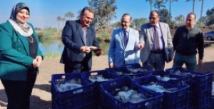 Prof.Dr. EL-Sayed Fouda, the vice president of community service and environment development witnesses with prof.Dr. Mahmoud EL-Zabalawy, the dean of the faculty of agriculture in Moshtohor the production of Tilapia in the open fish farms. This is happened in the presence of prof.Dr. Ehab Farid, the vice dean of community service and environment development and Ms. Rania Motaaz, the assistant secretary-general of community service and environment development. The vice president stresses that the faculty uses the most advanced ways to bridge the nutrition gap and achieve the nutrition security as per Egypt vision of sustainable development 2030. He also says: “the University is keen to support the agricultural Units and the productive farms to meet the demands of the community at lower costs for the citizens”.